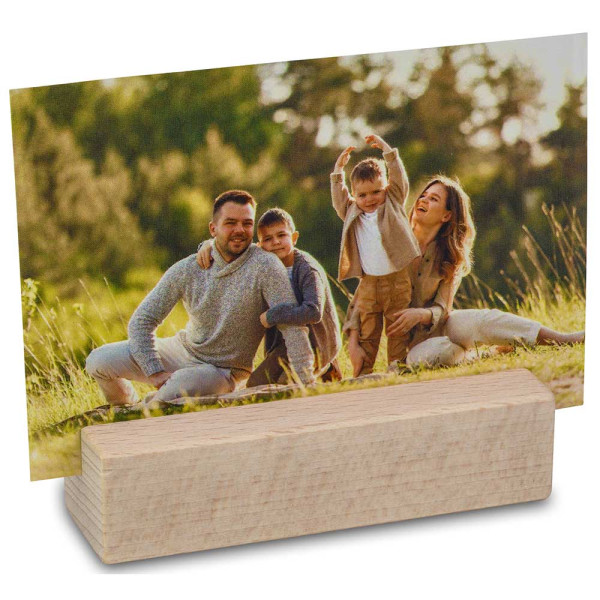 A photo of loved ones, pictures or decorative sayings cards, all of them can be displayed in the high-quality wooden picture holder. The wood originates from responsible cultivation. The advertising message is individually printed on the paper band. A laser engraving on the wood creates a long-lasting and positive connection to the company.
