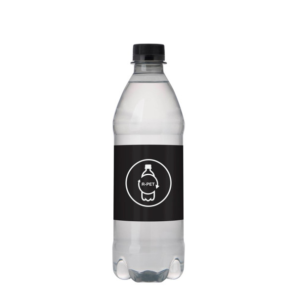 500 ml natural spring water in an R-PET bottle with screw cap. Kappe Farbe weiss.