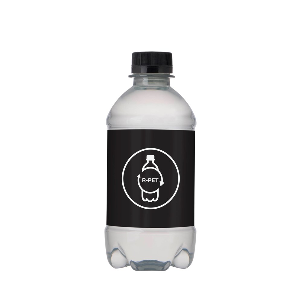330 ml natural spring water in an R-PET bottle with screw cap. Cap colour transparent