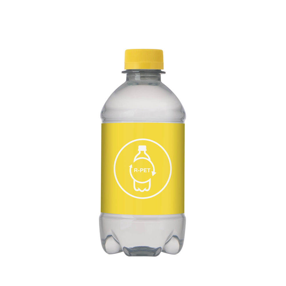 330 ml natural spring water in an R-PET bottle with screw cap. Cap colour transparent