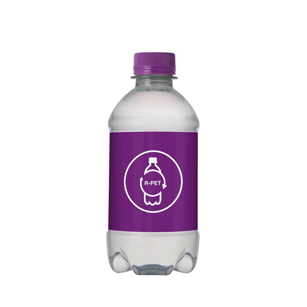 330 ml natural spring water in an R-PET bottle with screw cap. Cap colour transparent more