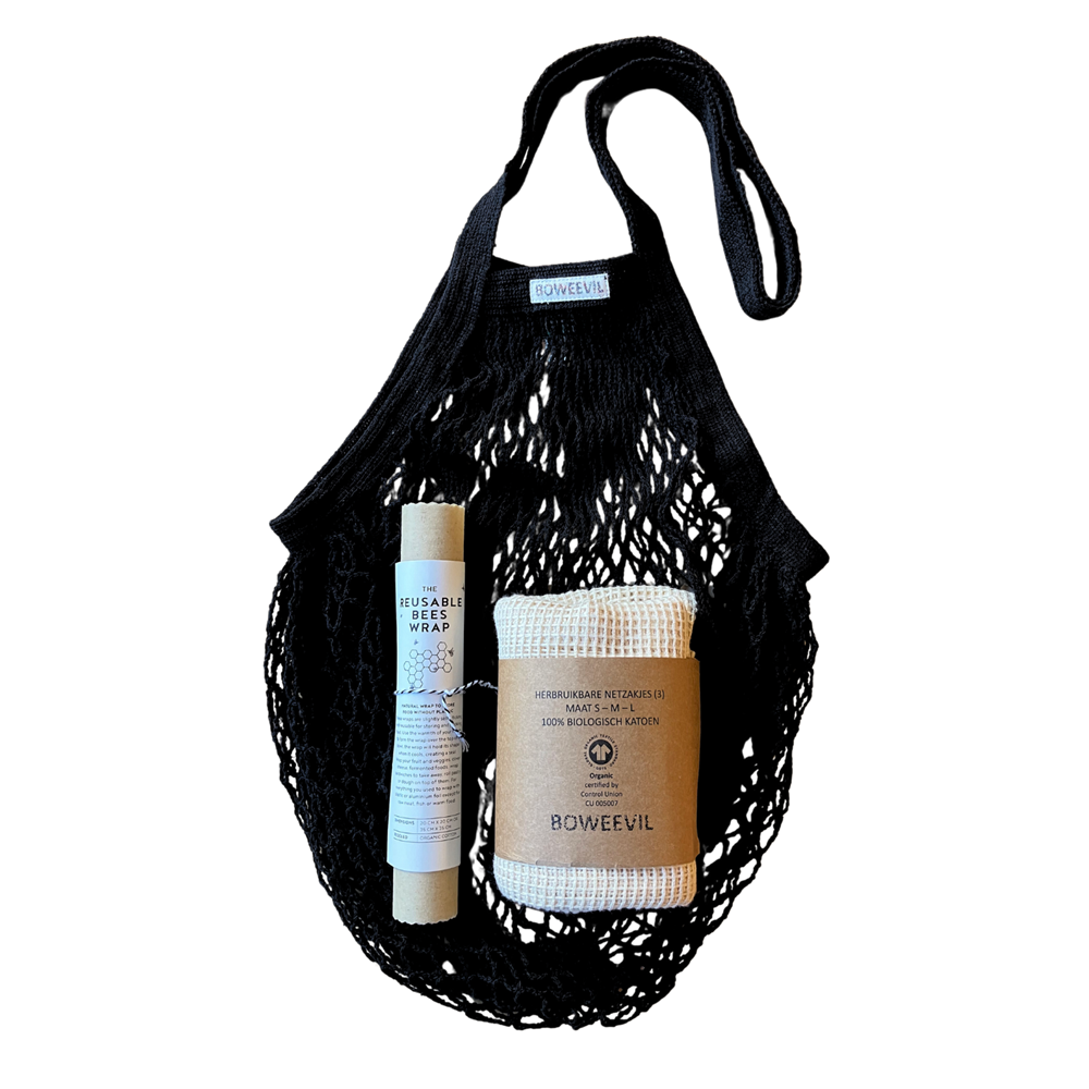 With this shopping set, you will always go shopping feeling good. The net bag with long handle fits a lot of groceries. Fruit and vegetables can be stored in the three fruit and vegetable bags. Plus a handy beeswax cloth. The replacement for your kitchen foil! Ideal for storing cheese in the fridge or sandwiches. Rinse with cold water after use and ready to use again!