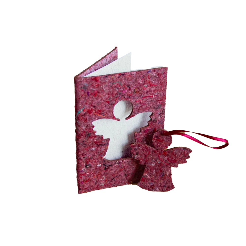 With this felt Christmas card, you not only get a personal message, but also an instant durable angel pendant for on the tree.