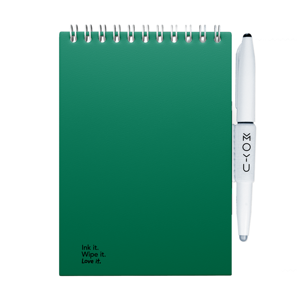 A MOYU notebook is made of stone paper. But this stone paper is even more special than you might have seen or tried before. This is because this stone paper is very sturdy. The notebook comes with a Pilot Frixon pen and a cloth. You write in the notebook with this pen. And with a damp cloth you wipe away the text you have written in 1x. Wiping it off is not easy when you go over it with your hand, so the text stays put. But as soon as you go over it with a wet cloth, your page is completely empty again. And hence the sturdy paper. This allows you to use and clean a page up to 500 times!