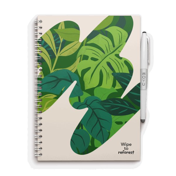 A MOYU notebook is made of stone paper. But this stone paper is even more special than you might have seen or tried before. This is because this stone paper is very sturdy. The notebook comes with a Pilot Frixon pen and a cloth. You write in the notebook with this pen. And with a damp cloth you wipe away the text you have written in 1x. Wiping it off is not easy when you go over it with your hand, so the text stays put. But as soon as you go over it with a wet cloth, your page is completely empty again. And hence the sturdy paper. This allows you to use and clean a page up to 500 times!