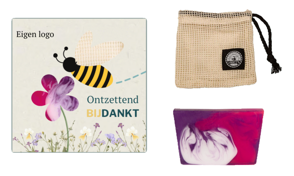 Cute little (gift) set from Loofy's with the text ‘Incredible_thanks’. With soap pouch and body bar. The durable soap pouch is the solution for when you want to lather your soap to the last bit and then let it dry easily. Suitable for all Loofy's shampoo, conditioner and body bars.