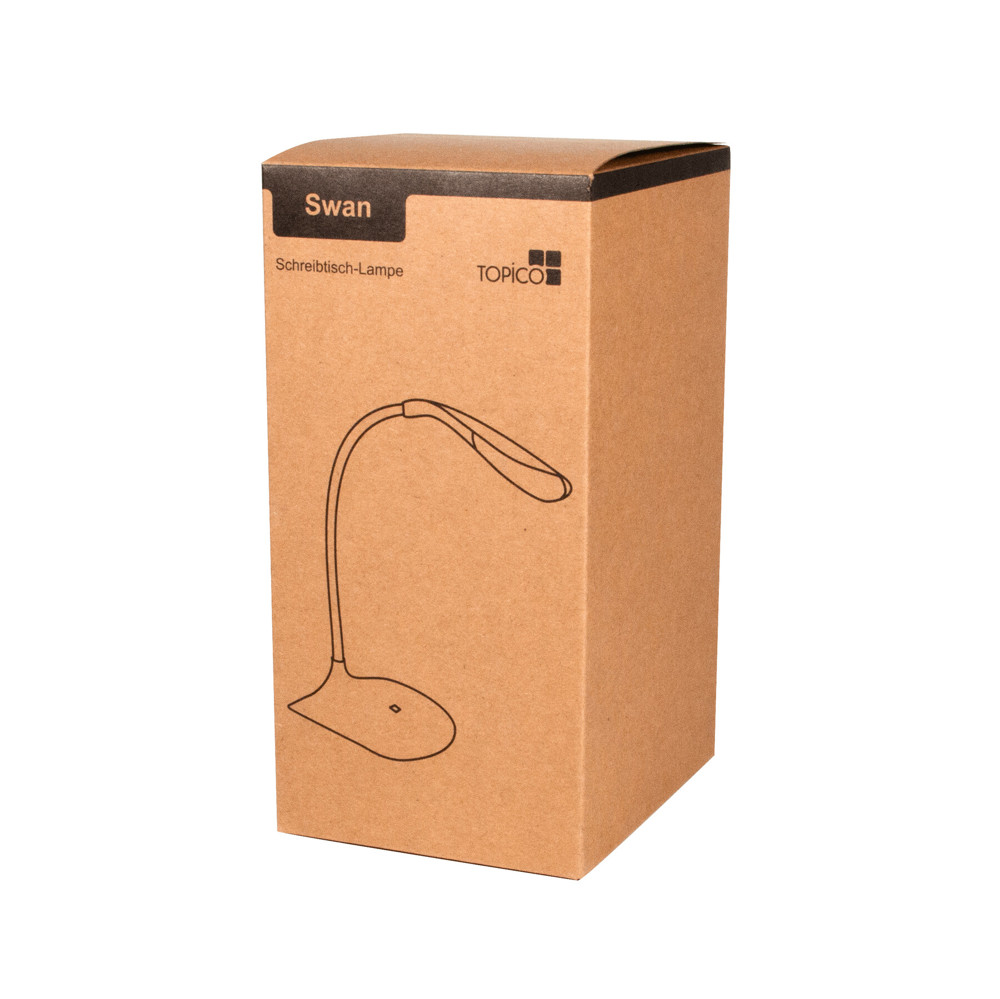 Desk lamp SWAN: flexible swivel lighting arm with 14 LEDs, dimming function with 3 brightness levels, touch sensitive on/off, powered through a USB cable (length 120 cm), versatile in use due to integrated battery, power consumption up to 1,5 Watt, stand with rubber feet for best surface hold, packed in gift box