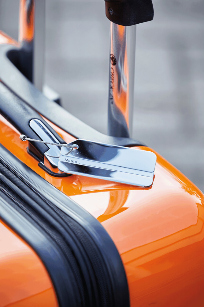 Luggage tag TRAVELLER: with integrated address field, robust metal wire with secure lock, made of stainless steel