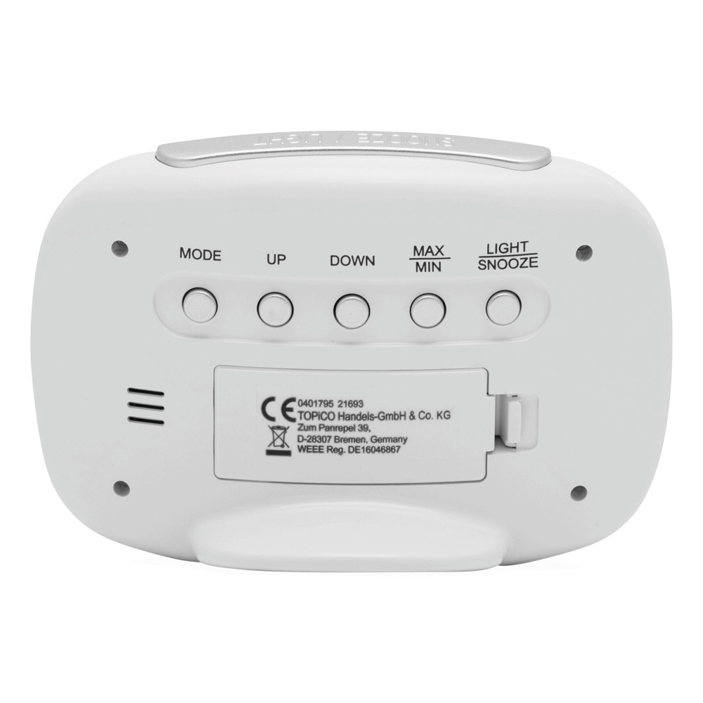 Weather station CALOR: with thermometer, hygrometer, humidity and time display, blue LED background lighting, made of white ABS plastic