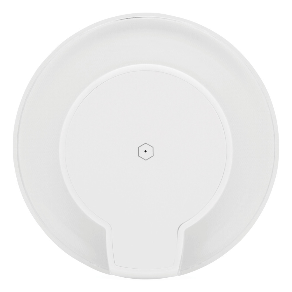 Wireless charging station INDUCTION: wireless charging of the device by touching it to the contact surface (the device has to be equipped for inductive charging), USB cable with Micro-USB connector (length approx. 70 cm), red LED light in the centre indicates operational availability, transparent ring glows blue during the charging process, input power: 5V/2A, output power: 5V/1A, rubber feet on the lower and a rubber ring on the upper side see to a secure hold.