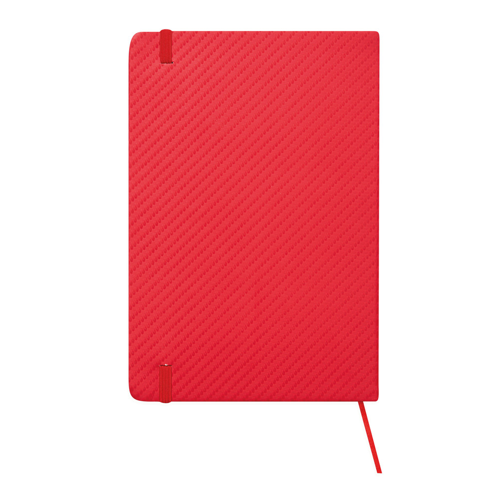 Notebook CARB in DIN A5 size with rounded corners: rubber band to close, with integrated bookmark, 80 sheets, lined, 70 g/m²