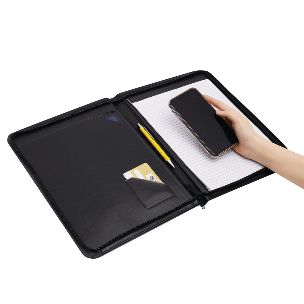Portfolio NEW STAR: in DIN A4 format, all-round zip, with notepad and slip-in pocket, additional slip-in pocket for business cards, elastic loop for a pen on the outside