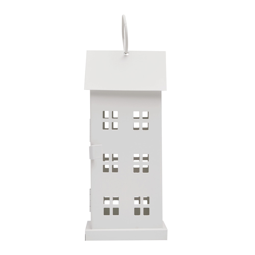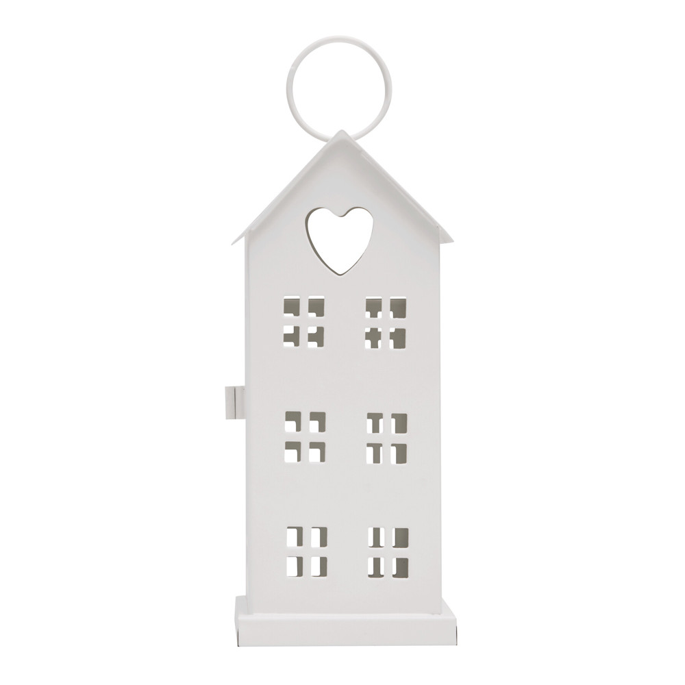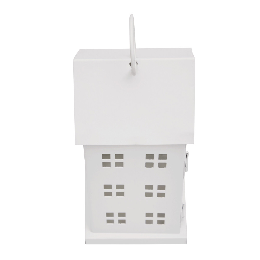 Lantern SHINY LIGHT: metal house with 6 windows on each side, door can be opened and filled with tealight or fairy lights (not included), hanging loop on the roof