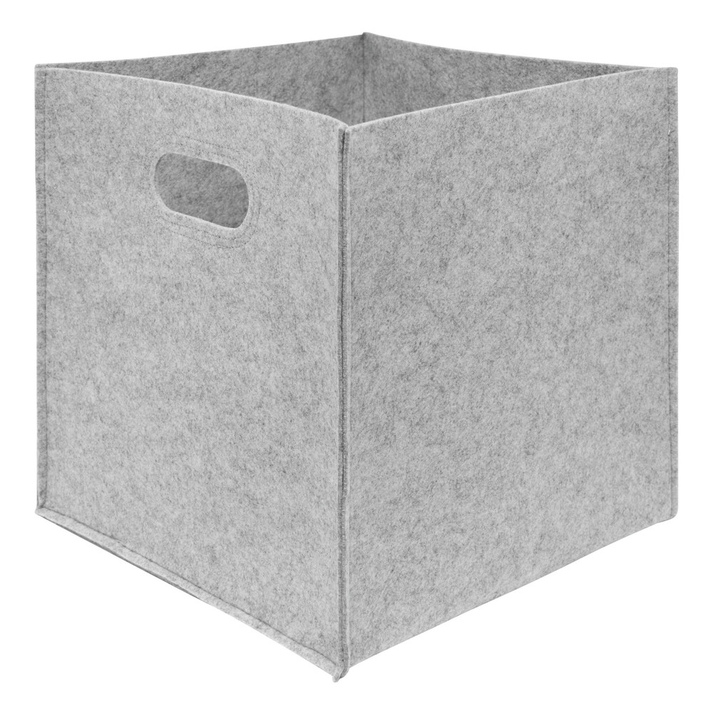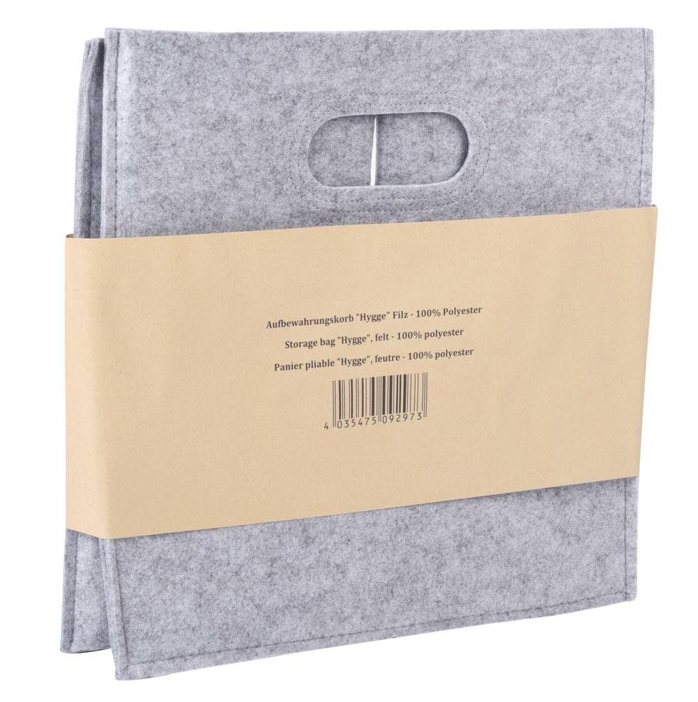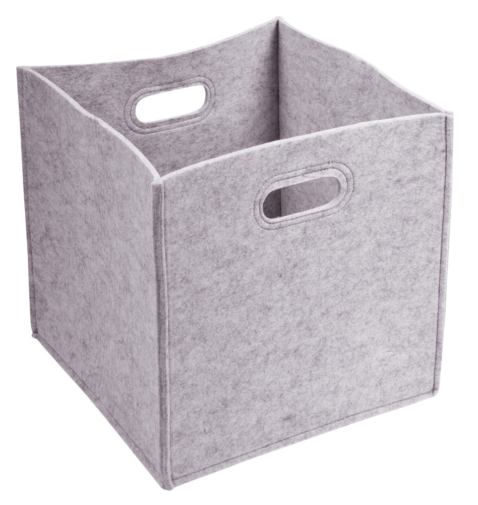 Felt storage box HYGGE: handy shelf box with 2 die-cut handles at the side with decorative sewing in a trendy Scandi design, for easy portability, spacious organiser for cubic bookcases or square shelves, foldable