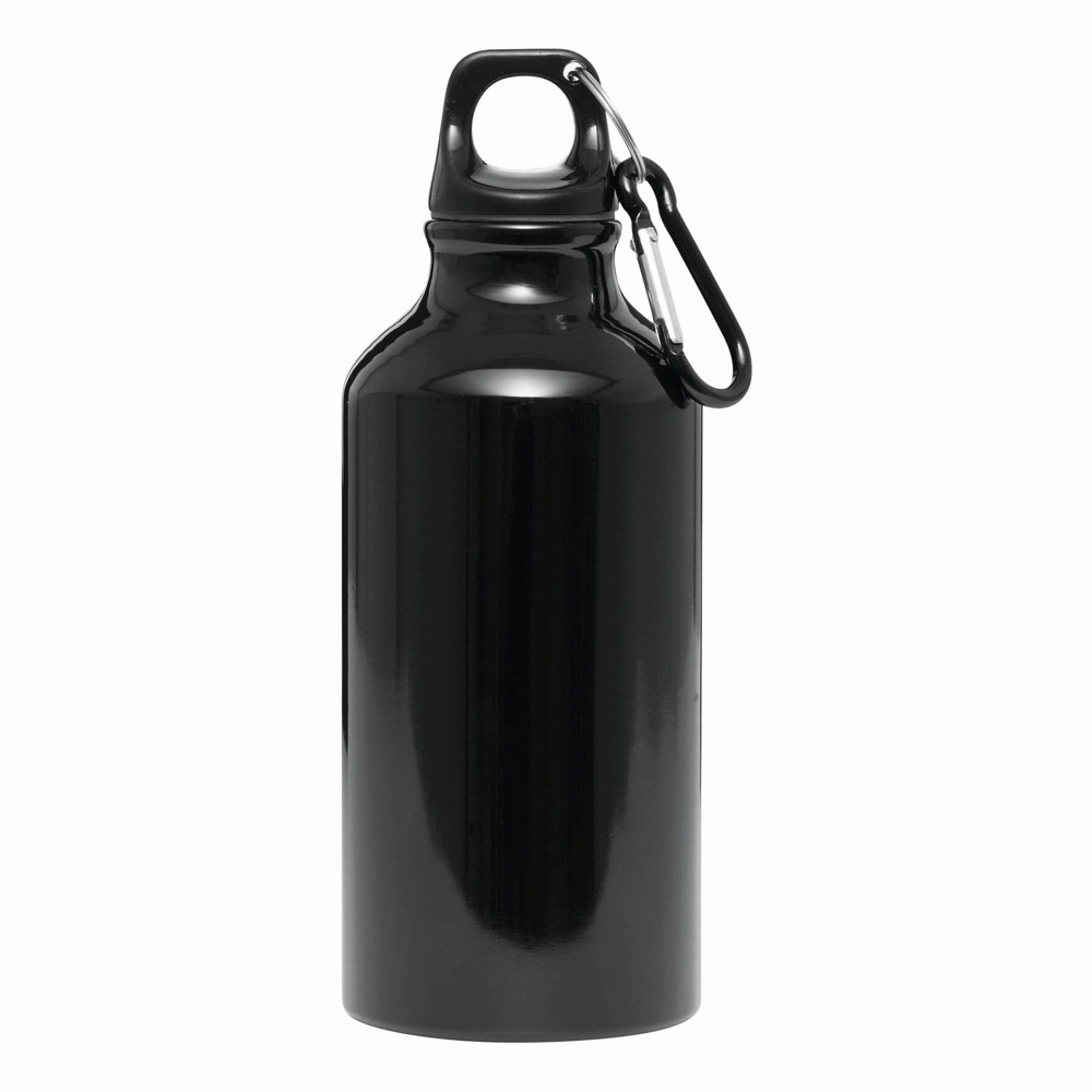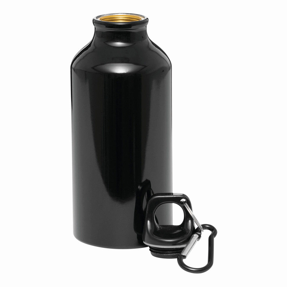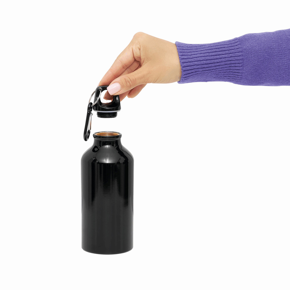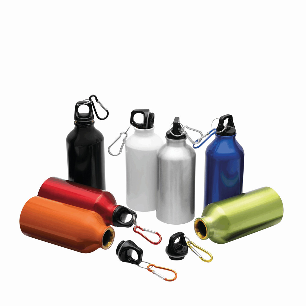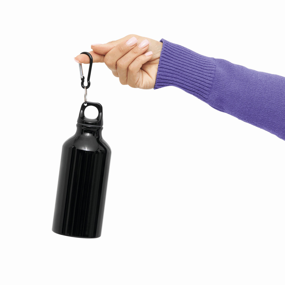 Aluminium drinking bottle TRANSIT: with carabiner in matching colour and plastic closure, capacity approx. 400 ml