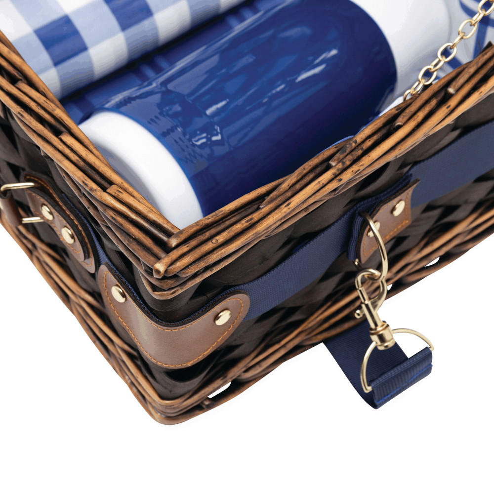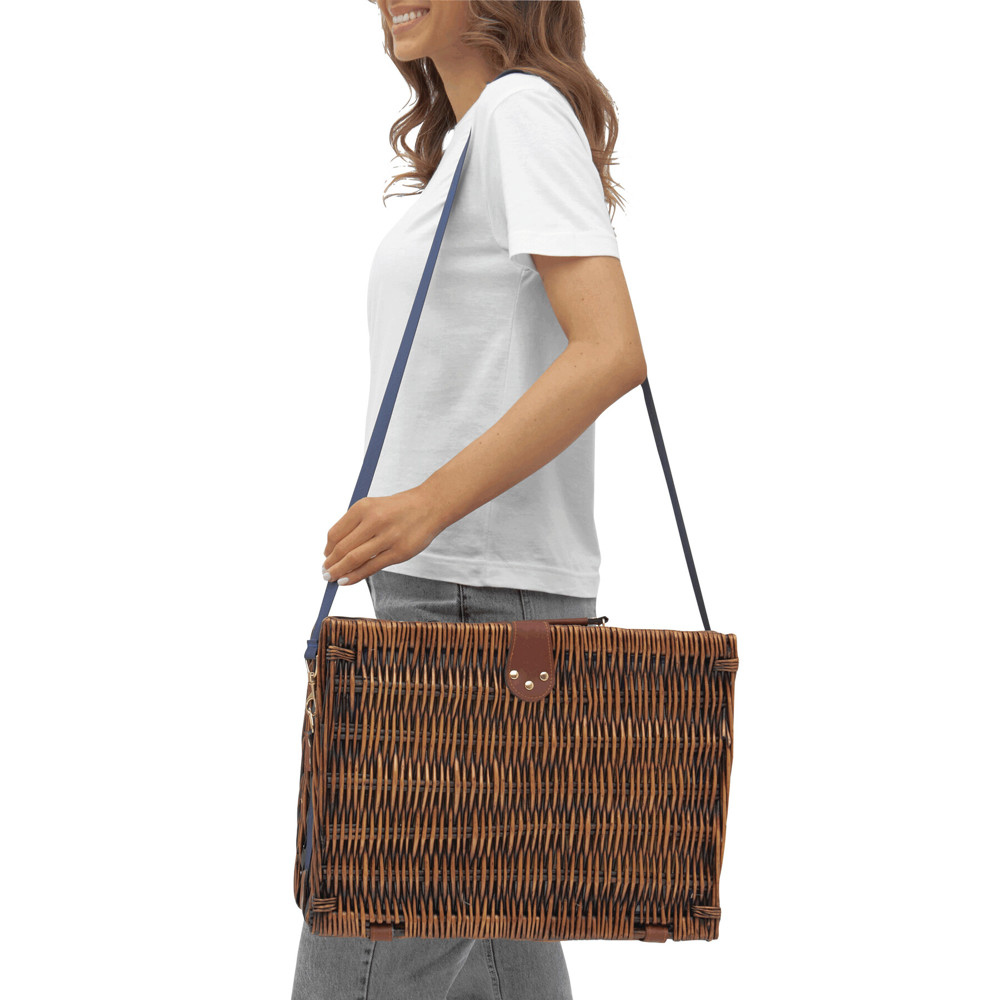 Picnic basket CENTRAL PARK with shoulder strap, includes porcelain dishes for 2 people, cutlery, flask, and a table cloth