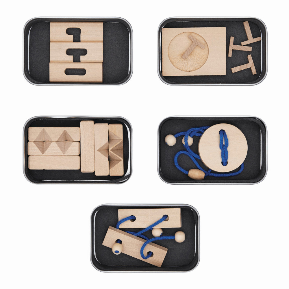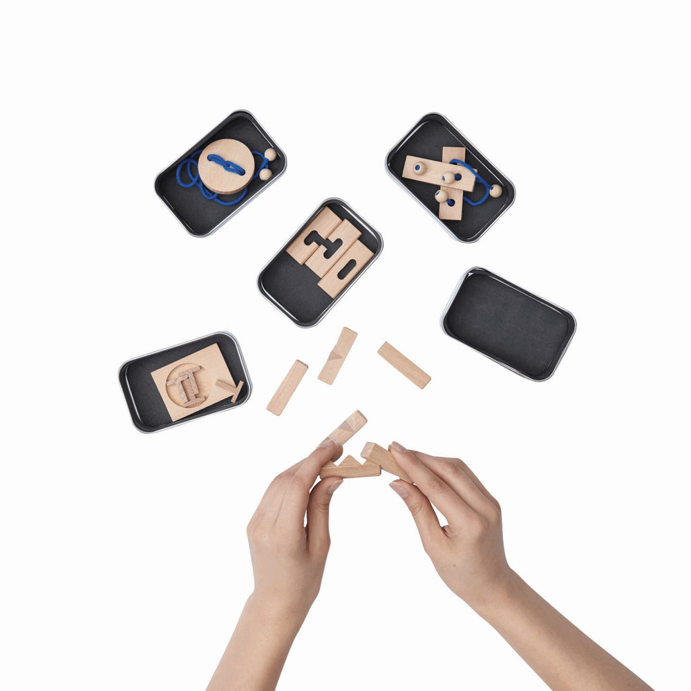Patience game THINK ABOUT in metal box with a paper label, 5-times assorted more