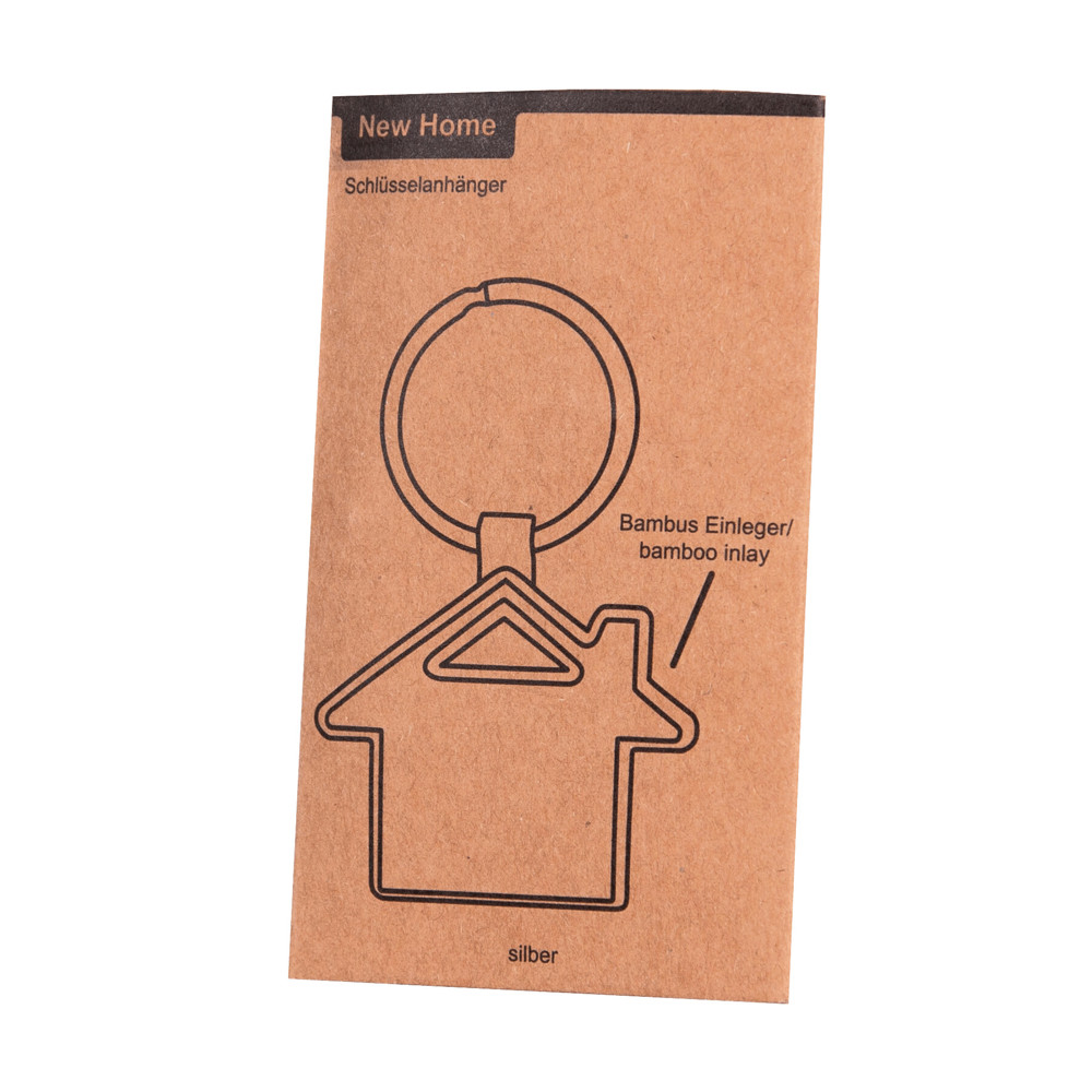 Key ring NEW HOME: metal house shape with bamboo front