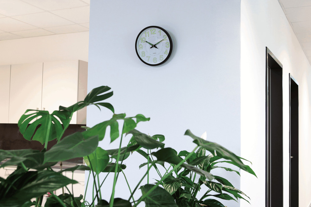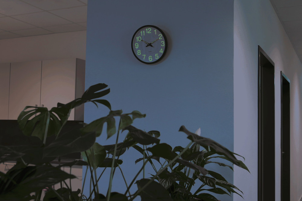 Wall clock SUN: with quartz crystal oscillator, analogue clock face, phosphorescent digits and... more