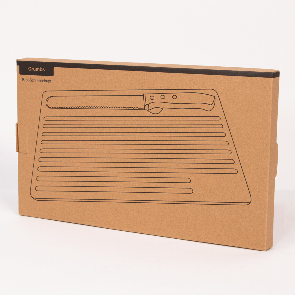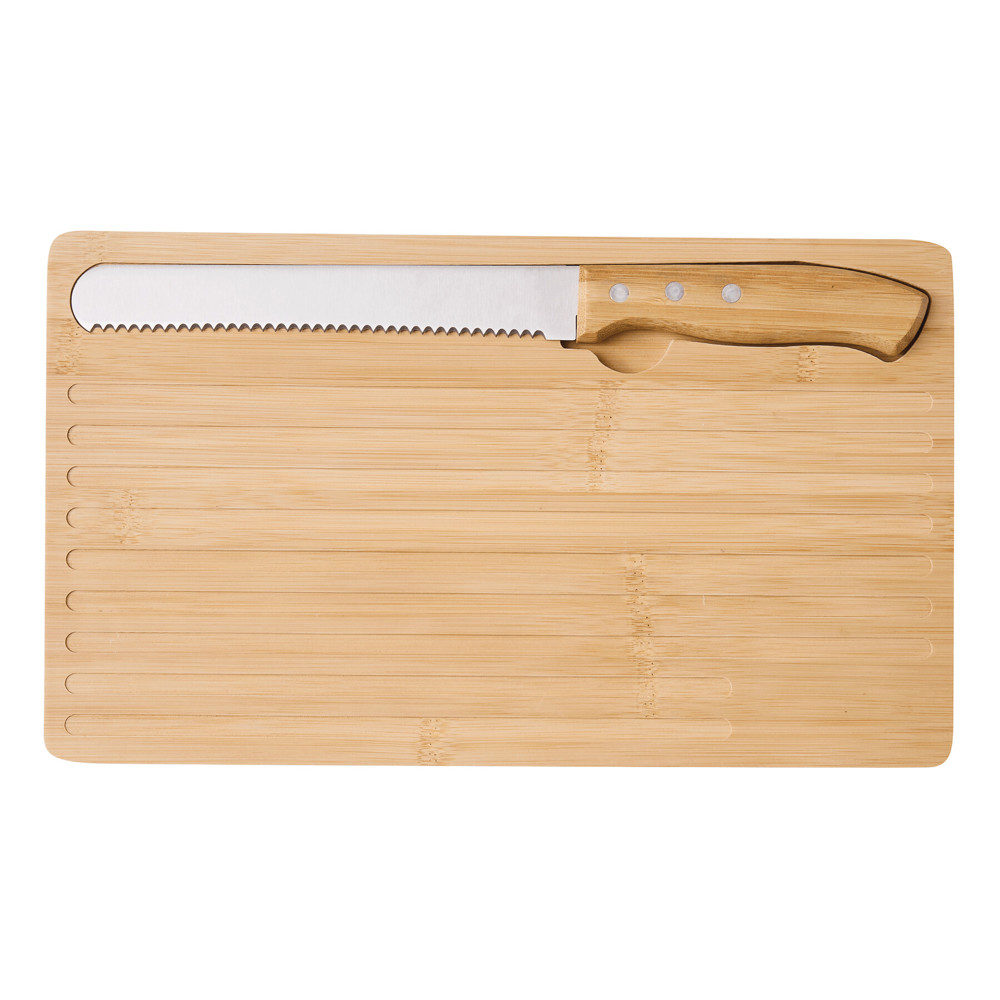 Bamboo cutting board CRUMBS: incl. bread knife with stainless steel blade and bamboo handle, knife can be stored perfectly in the recess