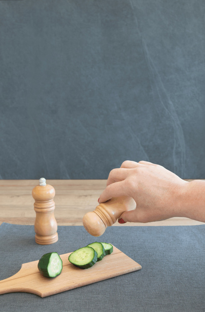 Salt shaker and pepper mill set DUO SPICE: made of wood, pepper mill with twist mechanism and ceramic grinder, salt shaker with 5 holes for controlled dispensation