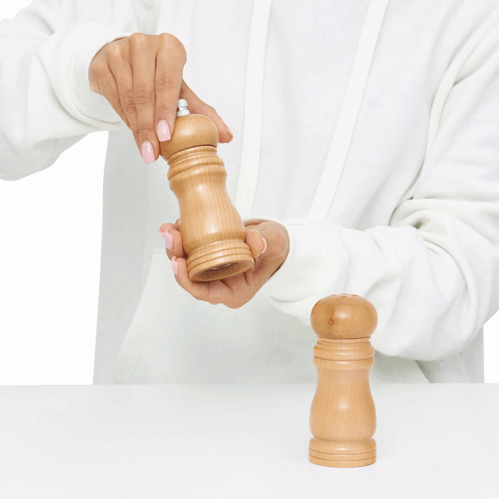 Salt shaker and pepper mill set DUO SPICE: made of wood, pepper mill with twist mechanism and... more