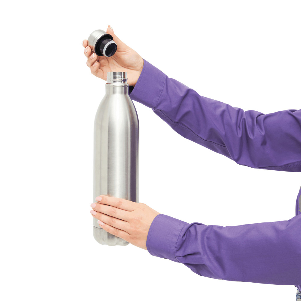 Insulated drinking bottle JUMBO TASTE, double-walled: inside and outside made of stainless steel, secure silver screw cap, capacity approx. 1.000 ml, keeps warm for approx. 8 hours and cold for up to 12 hours