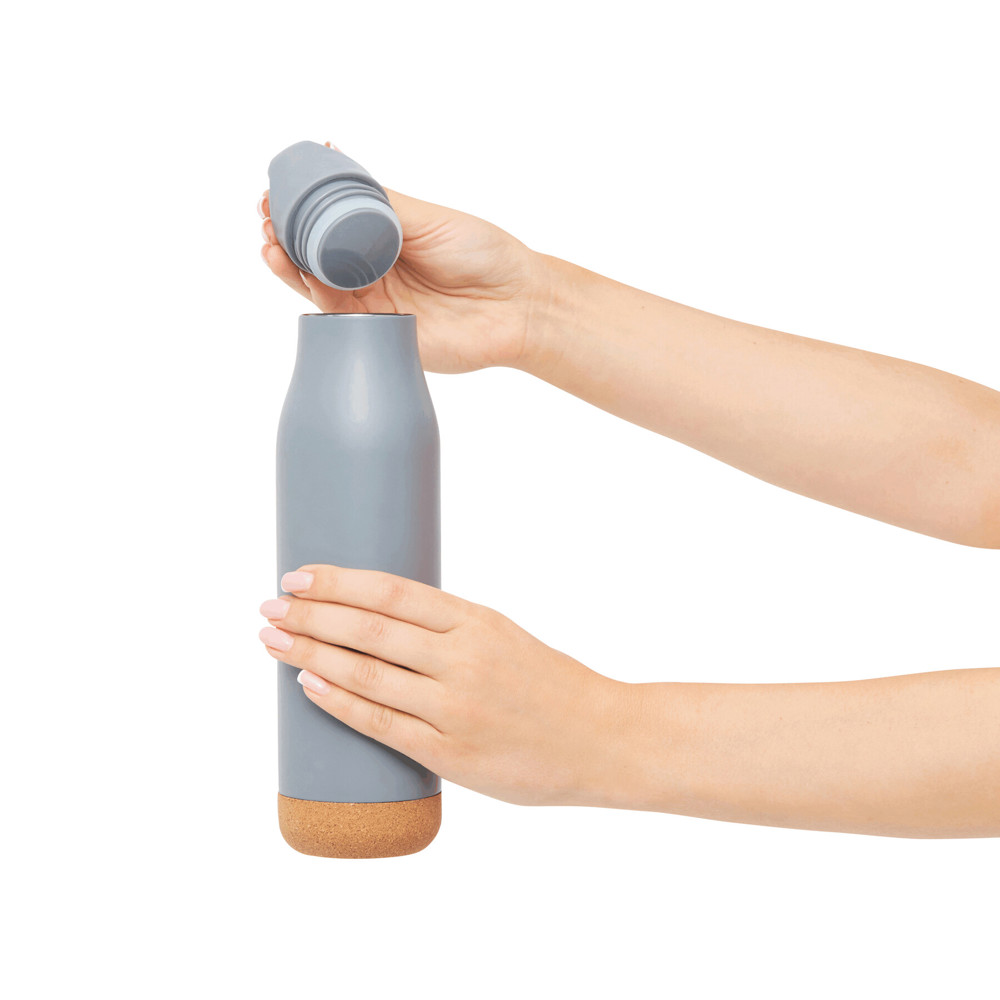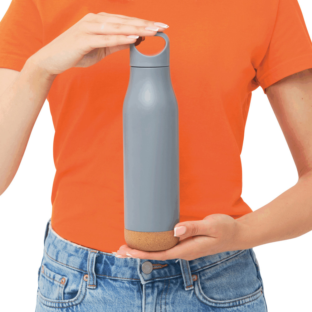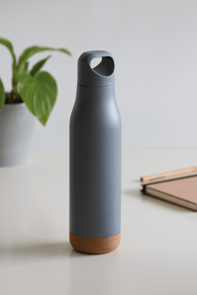 Insulated drinking bottle CORKY LEGEND, double-walled: inside and outside made of stainless steel, secure plastic screw cap, cork bottom, capacity approx. 500 ml, keeps warm for approx. 12 hours and cold for up to 24 hours