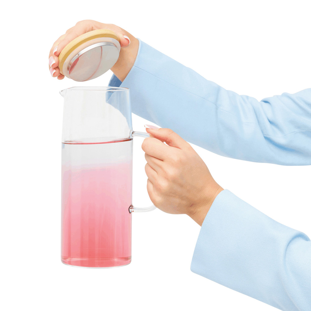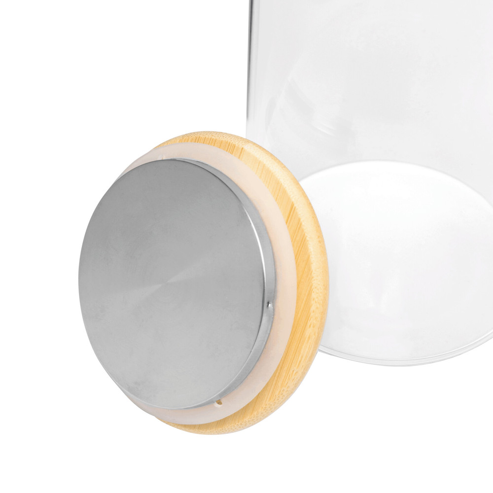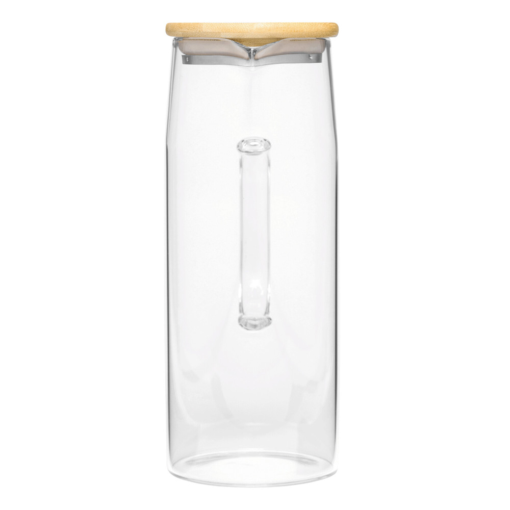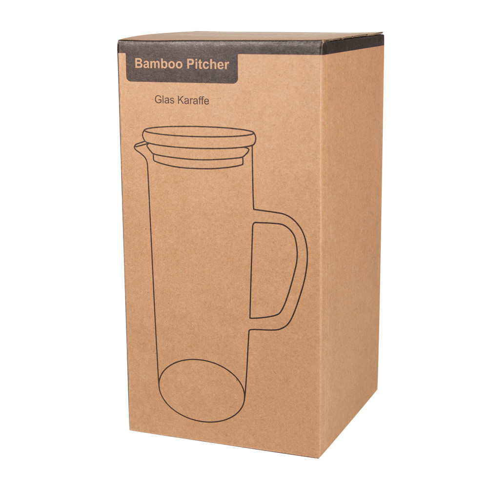 Glass carafe BAMBOO PITCHER: with handle, airtight bamboo lid, stainless steel layer at the bottom of the lid, capacity approx. 1.200 ml