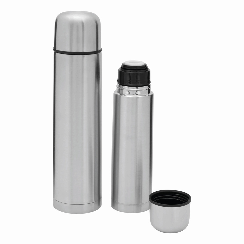 Double-walled vacuum flask WARM SOUL M: inside and outside made of stainless steel, screw cap (inside made of plastic) can be used as cup, plastic spout with push button and screw thread, capacity approx. 0,5 litres, in gift box