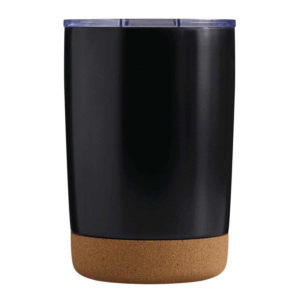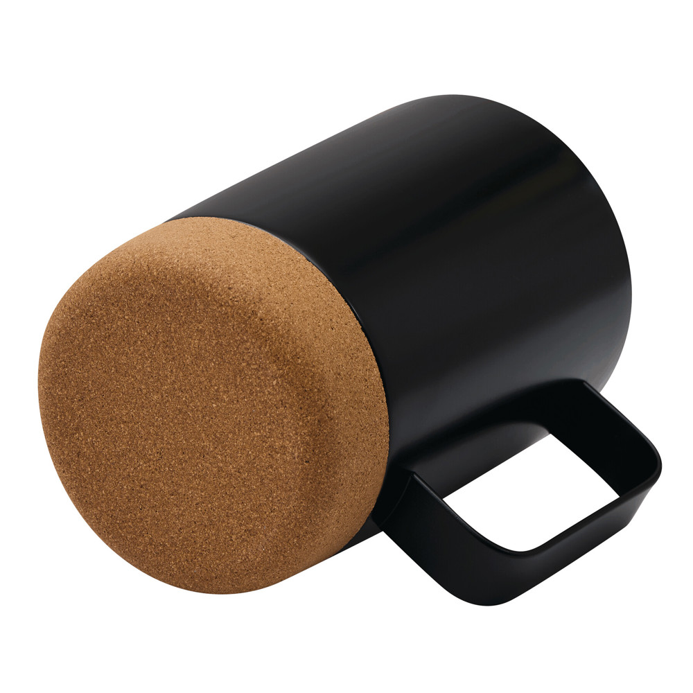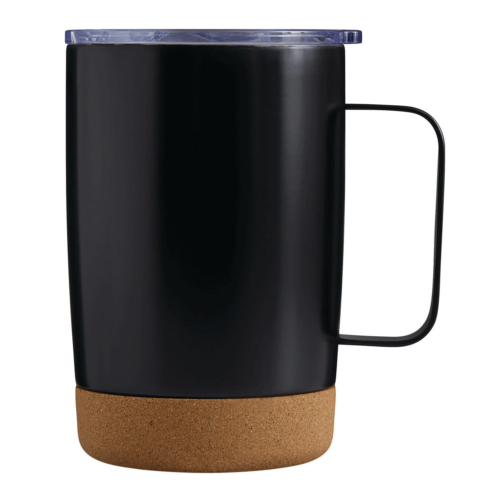 Vacuum drink mug STEELJOURNEY, double-walled: inside and outside made of stainless steel, with cork bottom and practical handle, plastic lid with silicone sealing ring and integrated sliding drinking opening, capacity approx. 350 ml, keeps warm for approx. 4 hours and cold for up to 8 hours, in a box