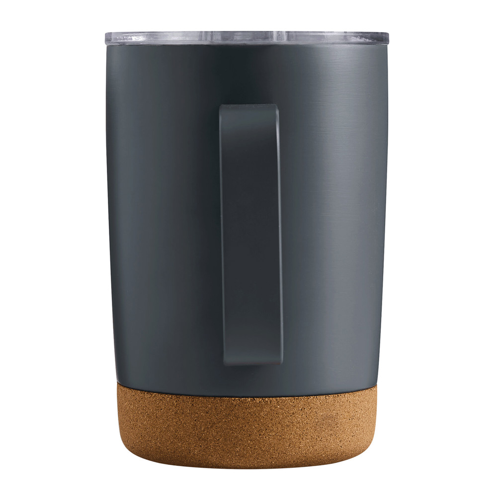 Vacuum drink mug STEELJOURNEY, double-walled: inside and outside made of stainless steel, with cork bottom and practical handle, plastic lid with silicone sealing ring and integrated sliding drinking opening, capacity approx. 350 ml, keeps warm for approx. 4 hours and cold for up to 8 hours, in a box