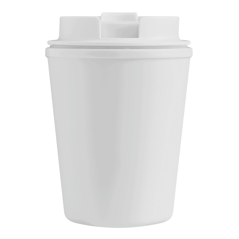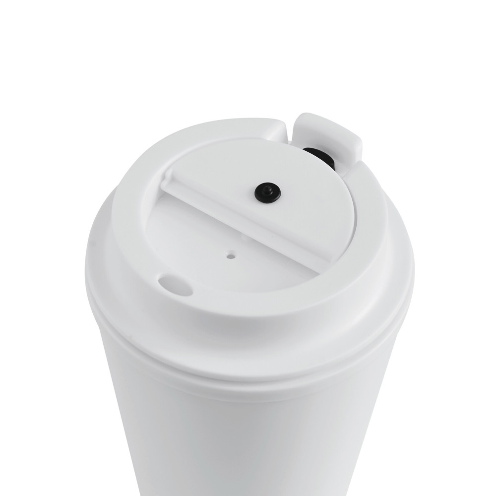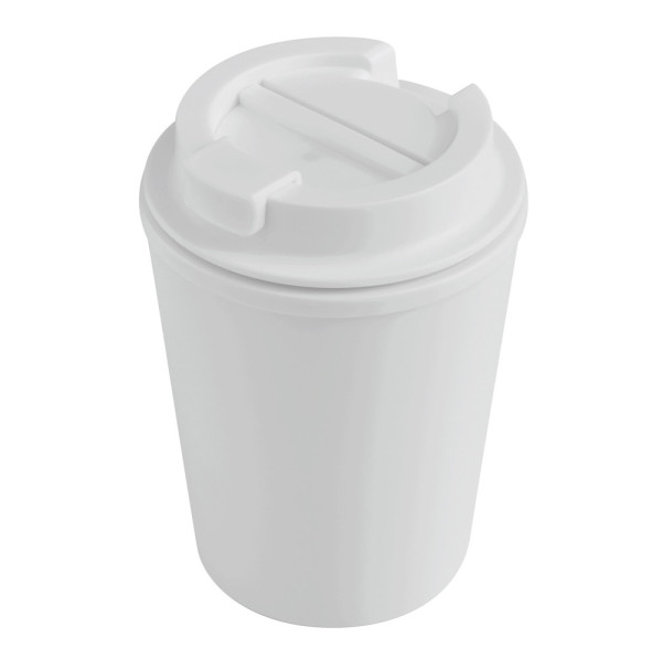 Insulated mug FLEXICUP, double-walled: inside and outside made of plastic, secure screw cap with silicone seal and integrated fold-out drinking opening, capacity approx. 350 ml, keeps warm for approx. 2 hours and cold for up to 4 hours