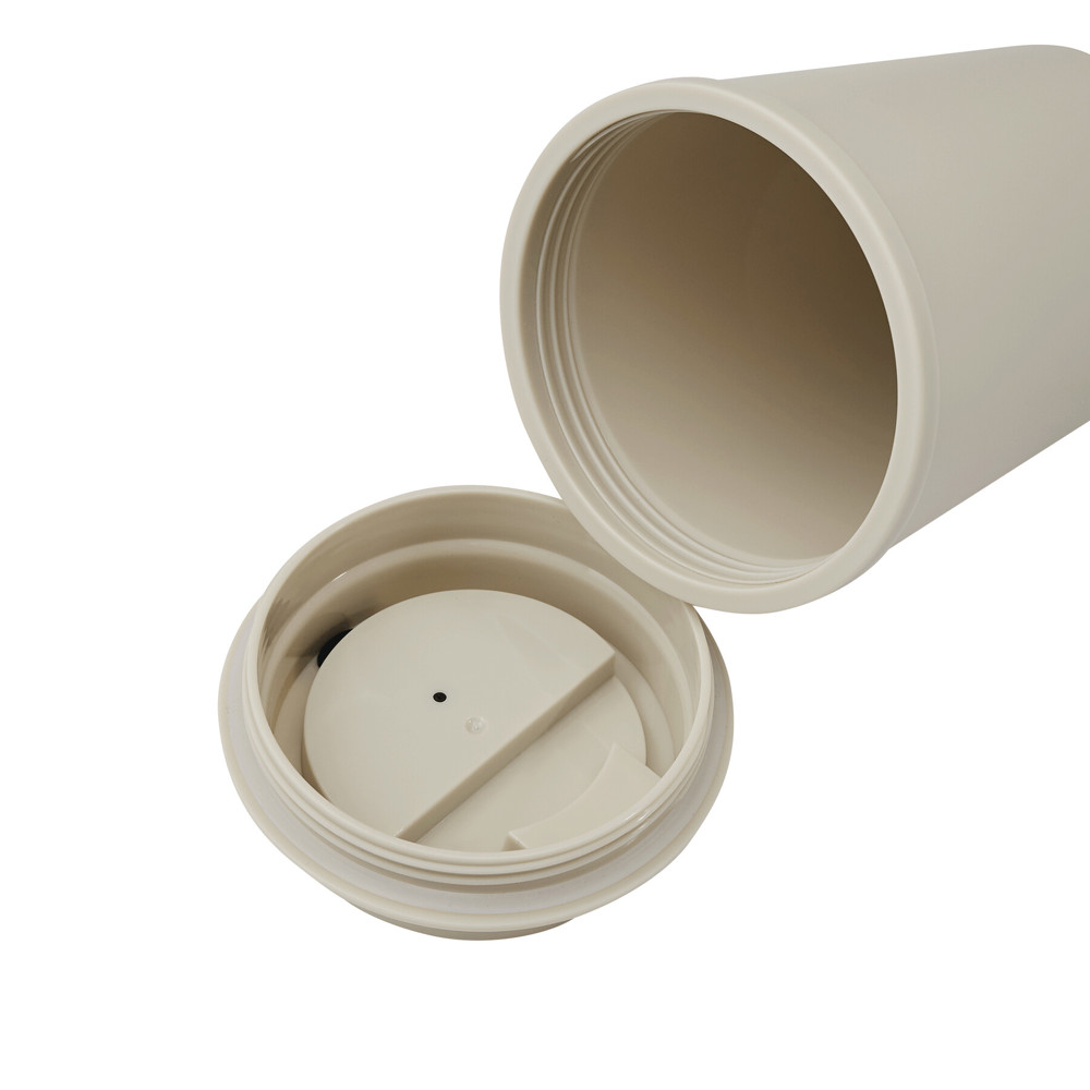 Insulated mug FLEXICUP, double-walled: inside and outside made of plastic, secure screw cap with silicone seal and integrated fold-out drinking opening, capacity approx. 350 ml, keeps warm for approx. 2 hours and cold for up to 4 hours
