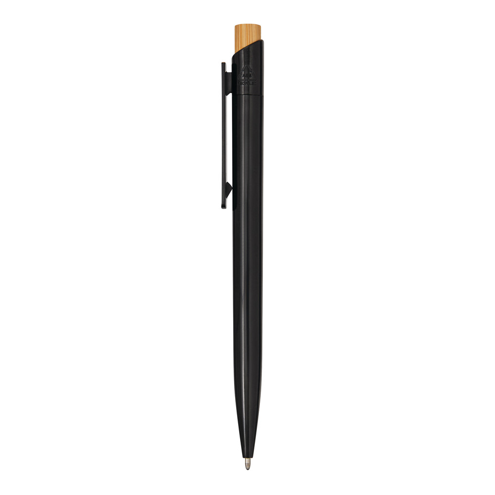 Ballpoint pen BAPU: barrel made from recycled plastic, push mechanism, pusher made of bamboo, blue ink