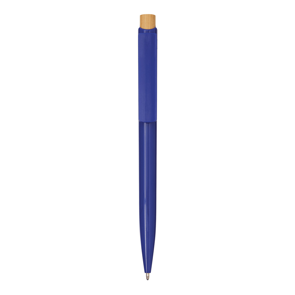 Ballpoint pen BAPU: barrel made from recycled plastic, push mechanism, pusher made of bamboo, blue ink