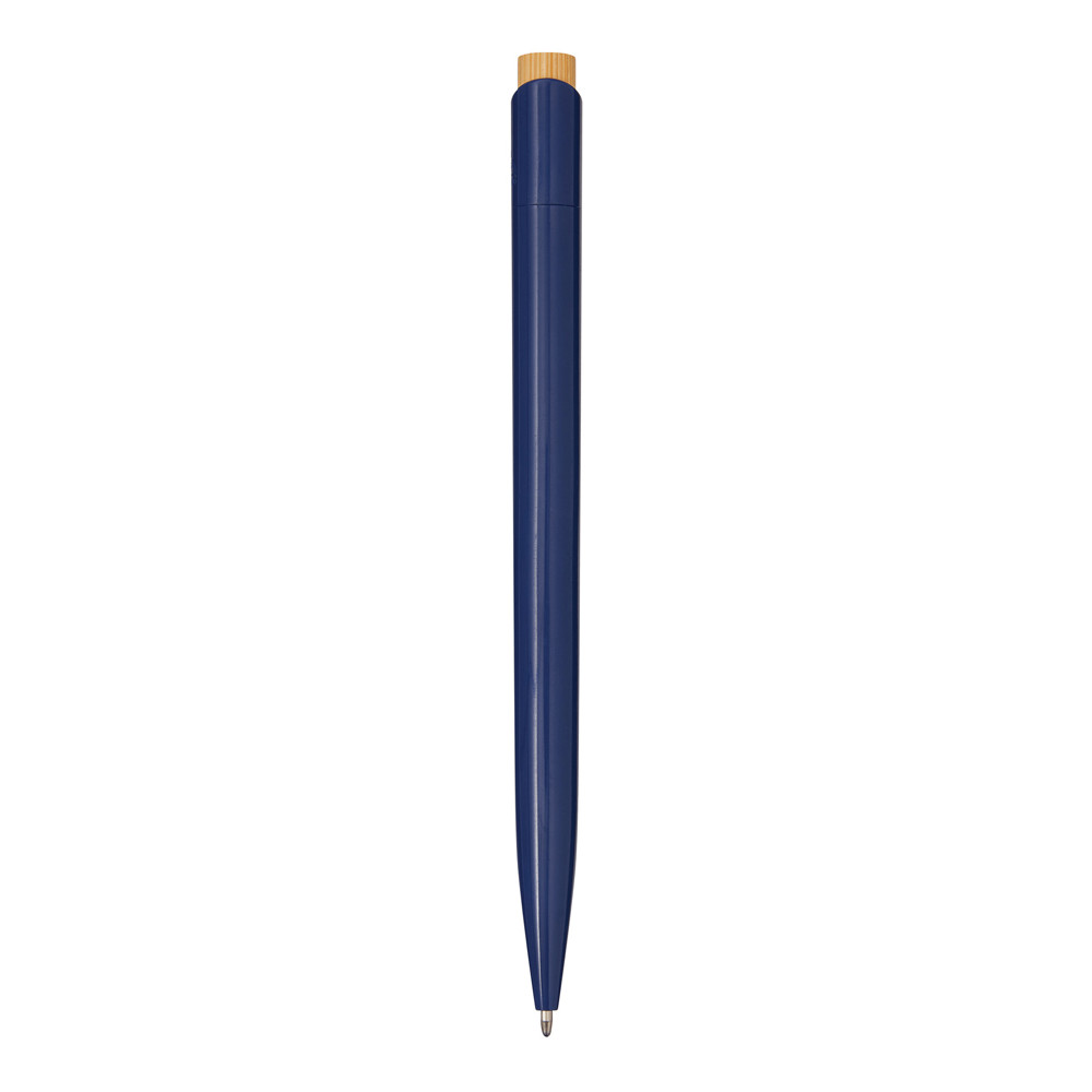 Ballpoint pen BAPU: barrel made from recycled plastic, push mechanism, pusher made of bamboo, blue ink