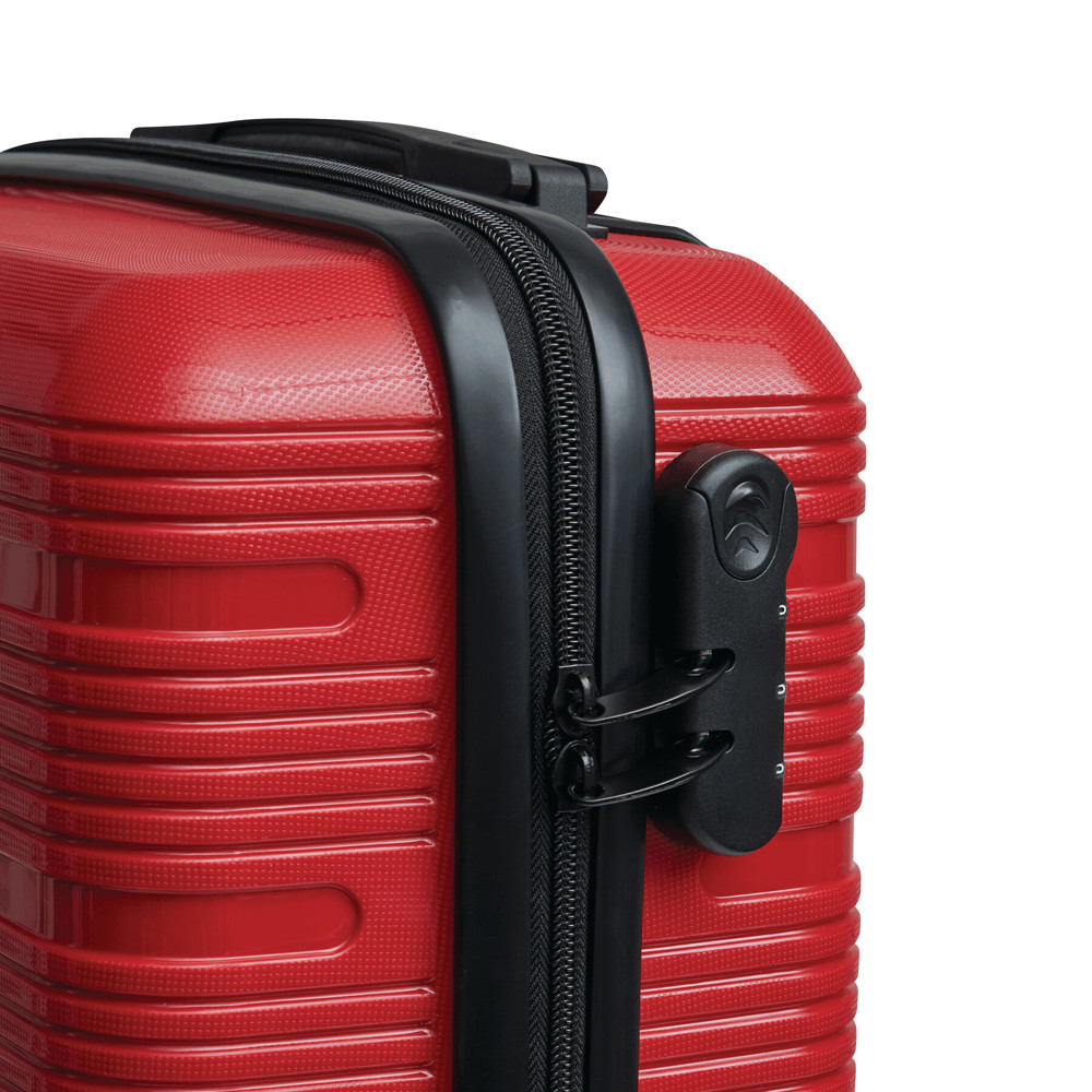 Trolley cabin suitcase YORK: made of especially durable material, packing on both levels, with zipped mesh pocket and elastic packing strap, lockable telescopic trolley system, carrying handle, 4 smooth-running 360° twin wheels, exchangeable metal logo plate on the front, combination lock – boarding size suitable for low-cost airlines