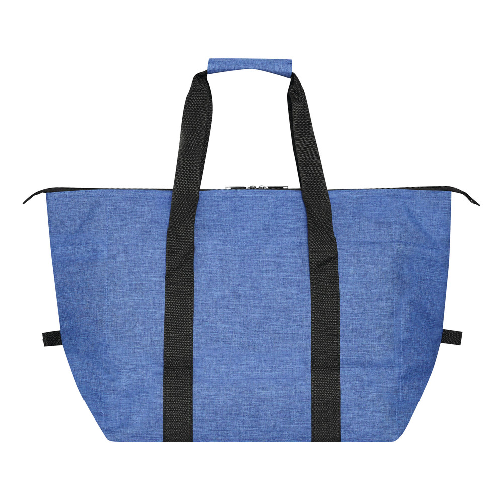 Cooler bag POLAR: made of recycled plastic (RPET), insulated main compartment with 2-way zip, 1 slip-in pocket on the front, reinforced carrying handles, expandable storage space by unsnapping top edges of the bag from the webbing loop attached at each side