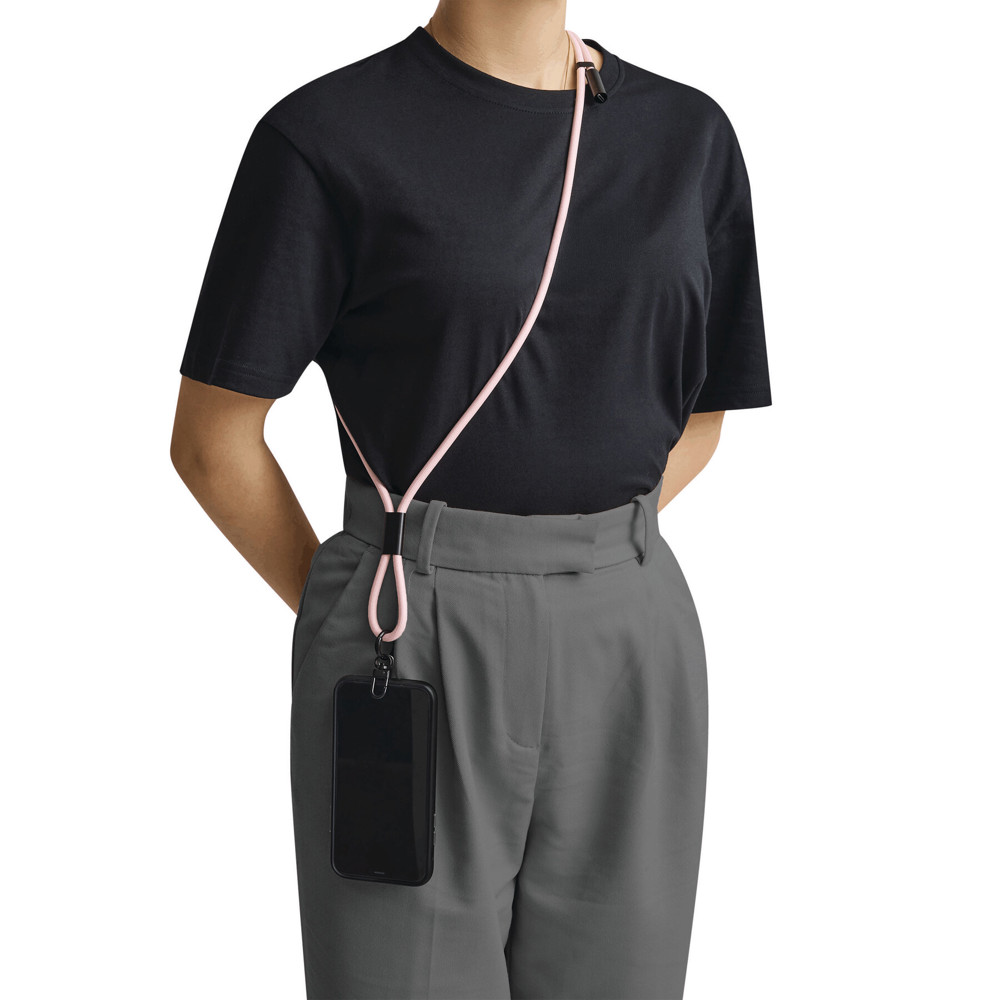 Universal phone lanyard MOBILE CARRY for smartphones: with small patch to place between the phone and the case (only suitable for cases that offer all-around edge protection), small carabiner to attach keys etc., adjustable lanyard length (for wearing crossbody or as a necklace), lanyard is also a 65 W charging cable with data transmission, USB Type-C, cable with fabric coating (cable length approx. 144 cm)