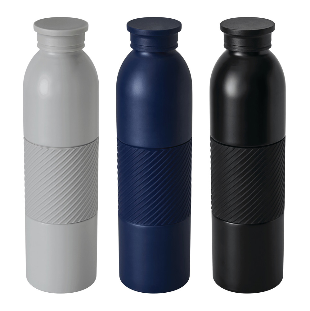 Vacuum insulated bottle VACUGRIP, double-walled: inside and outside made of stainless steel, colour-matching plastic lid with secure screw cap and silicone sleeve for optimum grip, capacity approx. 600 ml, keeps warm for approx. 8 hours and cold for up to 12 hours