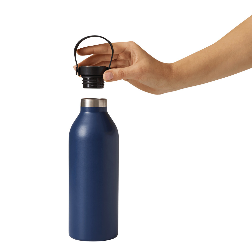 Vacuum insulated bottle STEELLOOP, double-walled: inside and outside made of stainless steel, matte powder coating, plastic lid with secure screw cap and silicone carrying loop, upper lid surface made of stainless steel, capacity approx. 500 ml, keeps warm for approx. 8 hours and cold for up to 12 hours