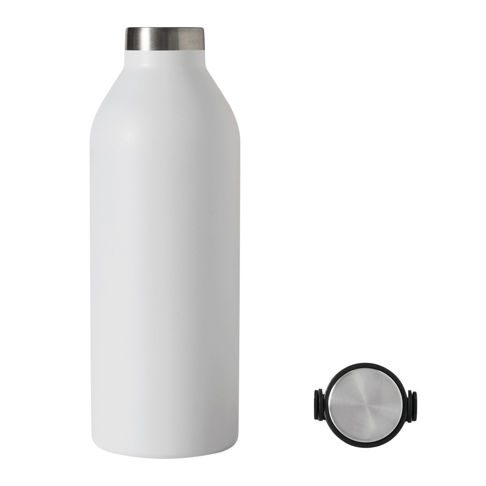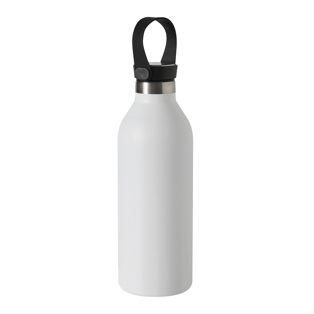 Vacuum insulated bottle STEELLOOP, double-walled: inside and outside made of stainless steel, matte powder coating, plastic lid with secure screw cap and silicone carrying loop, upper lid surface made of stainless steel, capacity approx. 500 ml, keeps warm for approx. 8 hours and cold for up to 12 hours