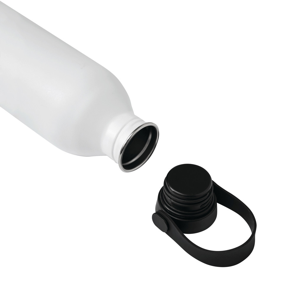 Insulated bottle GET REFRESH: matte powder coating, plastic lid with upper surface made of stainless steel, secure screw cap and silicone carrying loop, capacity approx. 550 ml