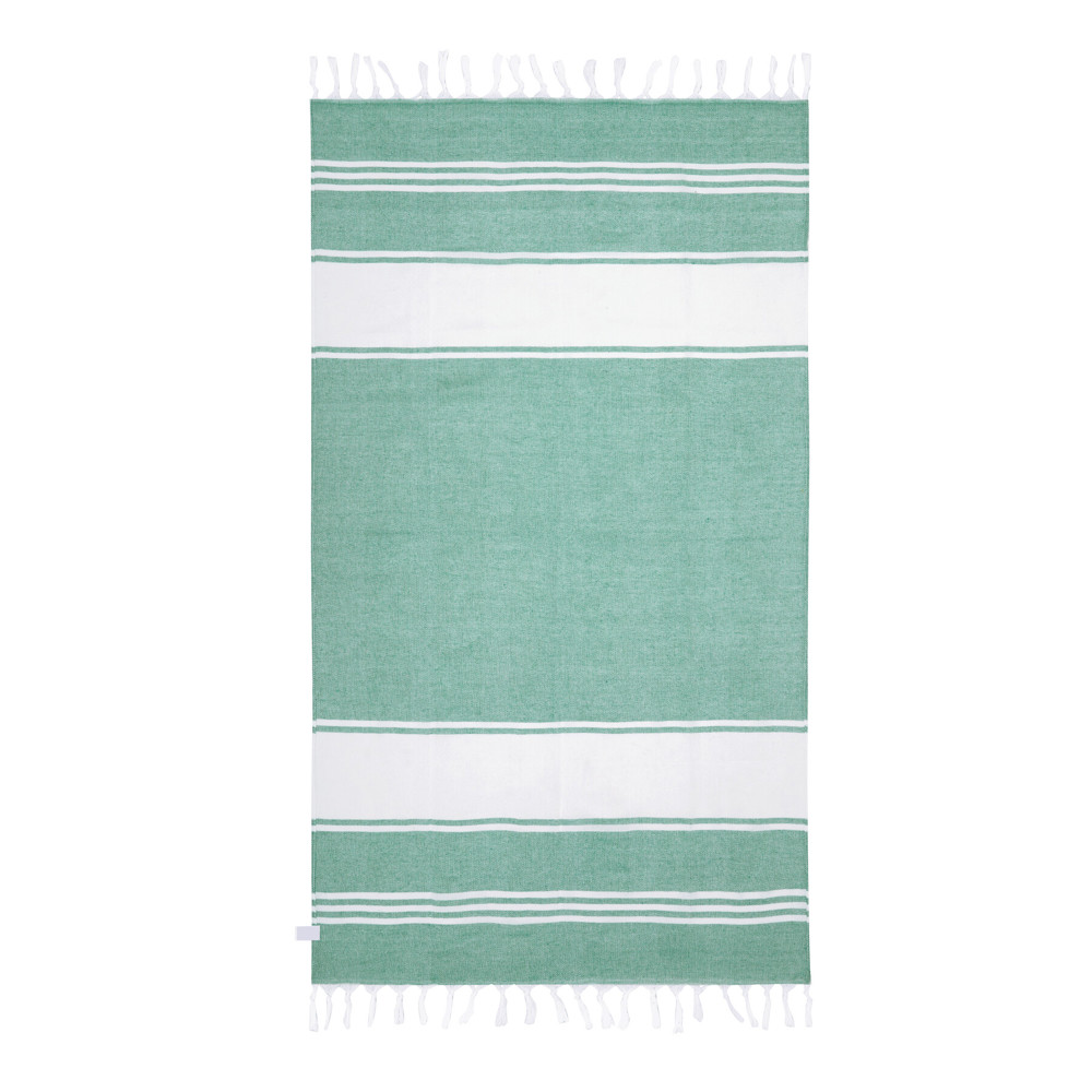Large beach/sauna towel SUN & STEAM: large towel with white stripes and fringes, in... more