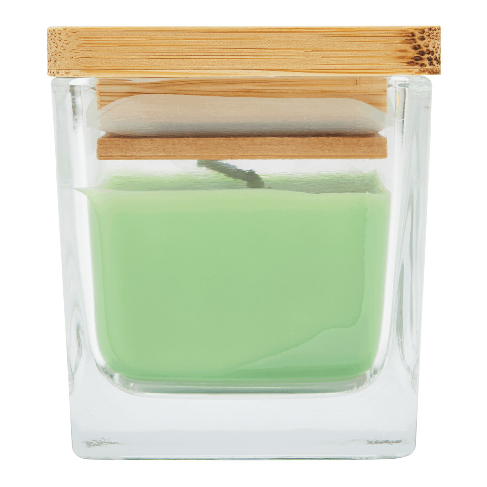 Scented candle GLOW: in square glass, coloured wax with vanilla fragrance, bamboo lid with... more