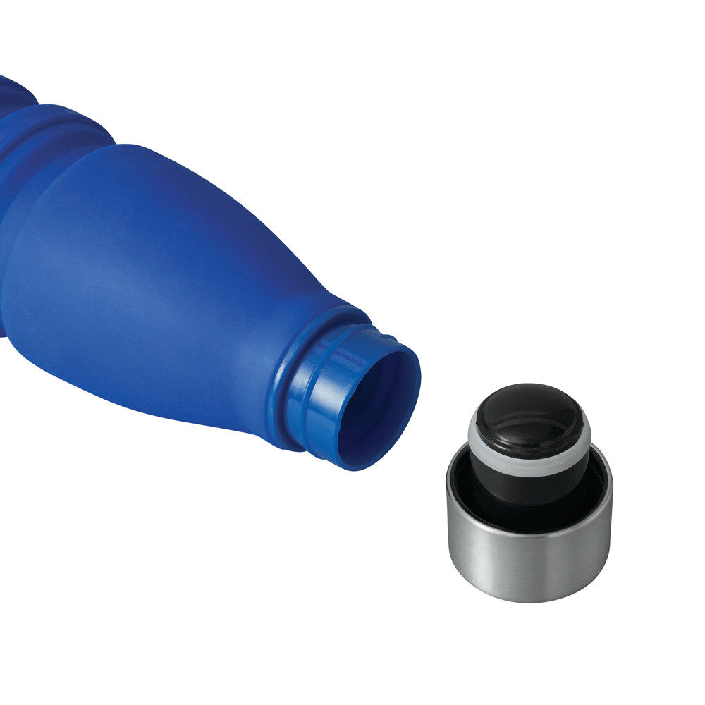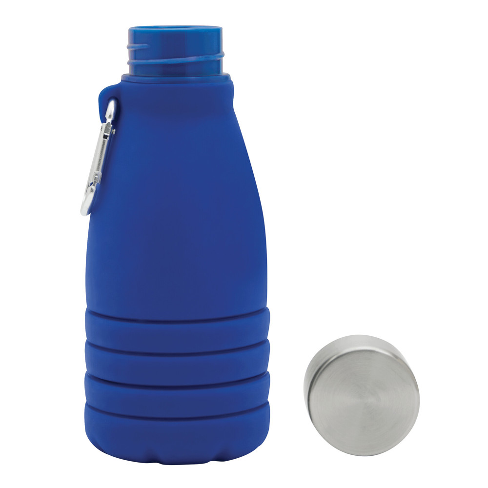 Foldable drinking bottle BIG GETS SMALL: stainless steel lid with secure screw cap and silicone... more