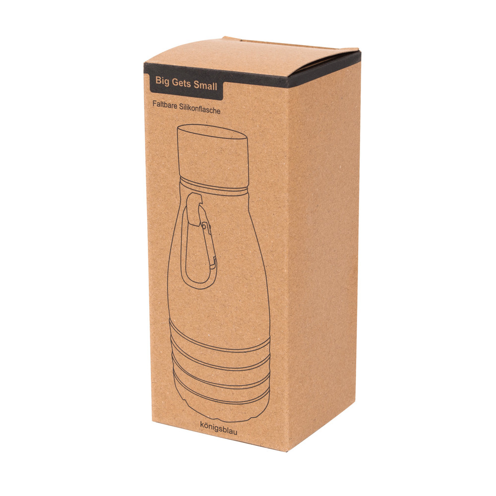 Foldable drinking bottle BIG GETS SMALL: stainless steel lid with secure screw cap and silicone sealing ring, with aluminium carabiner (the carabiner is NOT suitable for climbing), the bottle can be extended and folded by approx. 8 cm, capacity approx. 550 ml