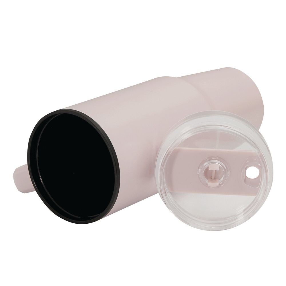 Drinking cup DRINK ULTY, double-walled: plastic on the inside and stainless steel on the outside, with practical handle, transparent plastic lid with secure screw cap, silicone sealing ring, drinking opening with rotating cover and transparent straw, capacity approx. 900 ml