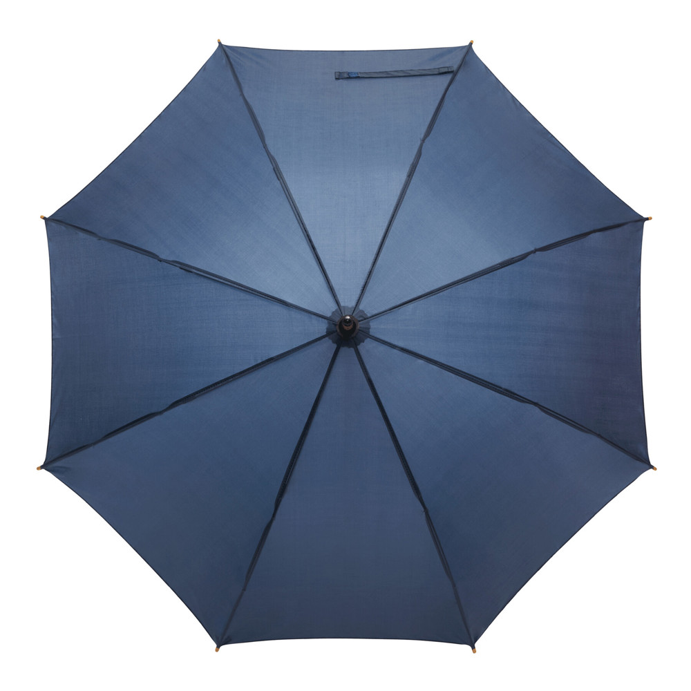 Automatic wooden stick umbrella JAZZ: with fibreglass ribs, wooden tips and wooden crook handle, polyester canopy made from recycled plastic (RPET), closing strap with Velcro